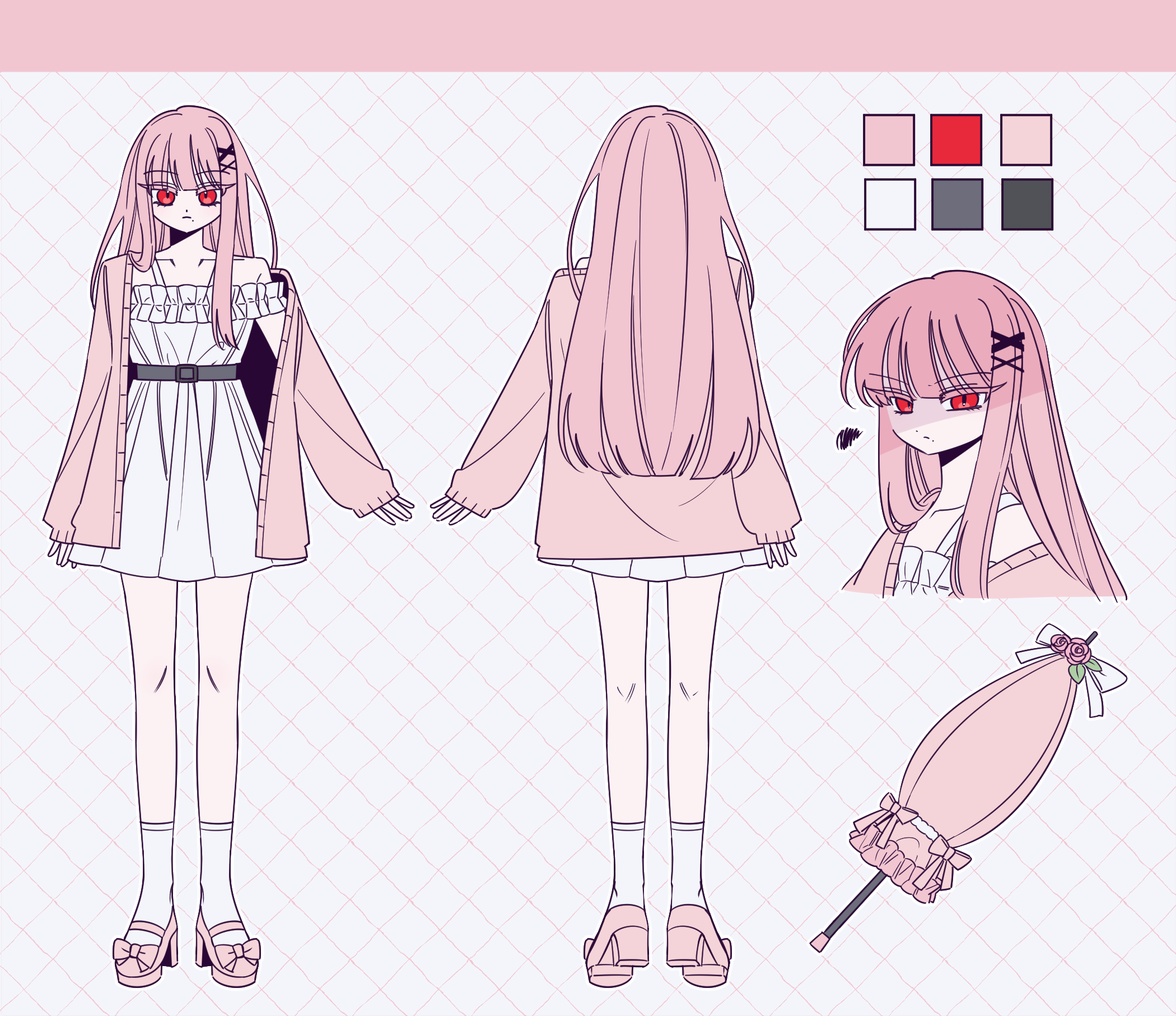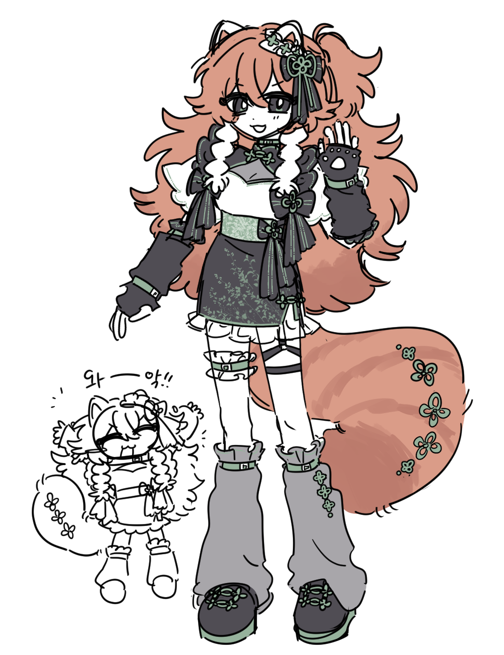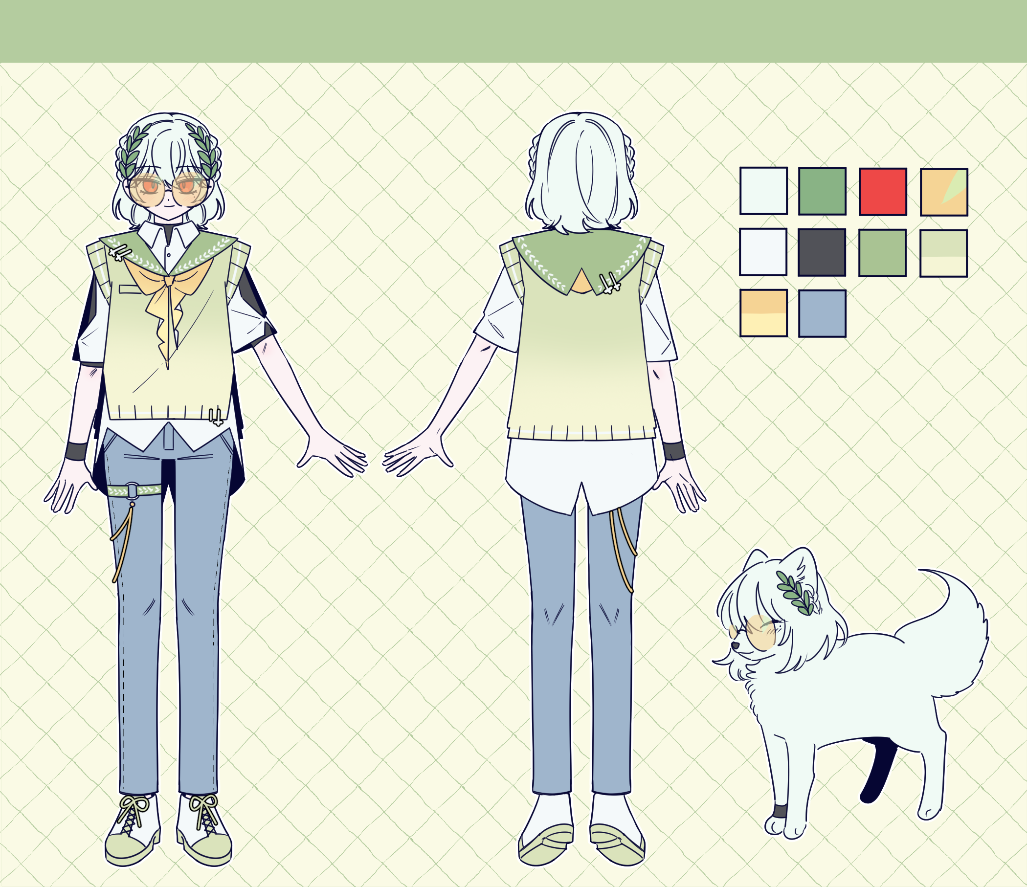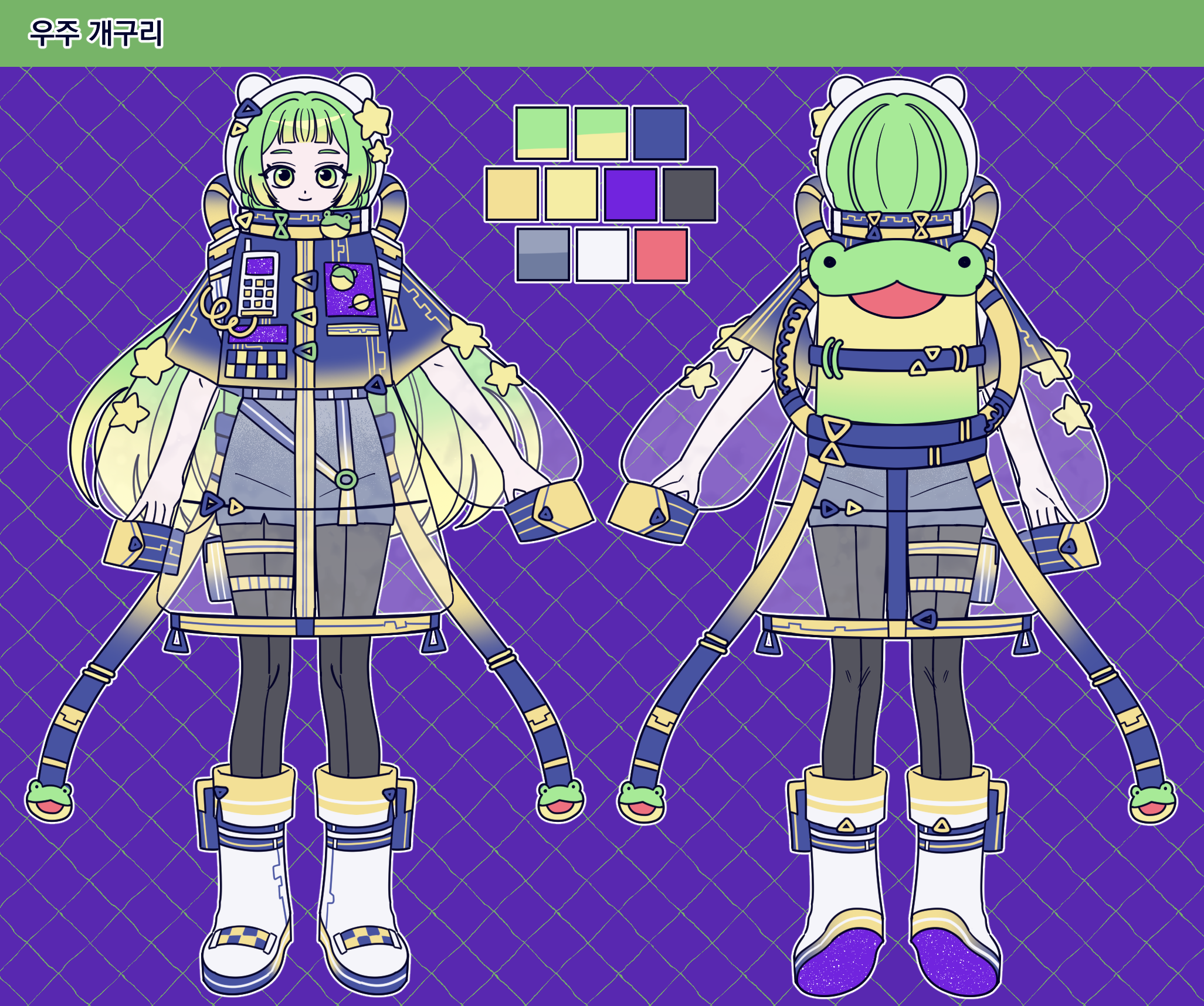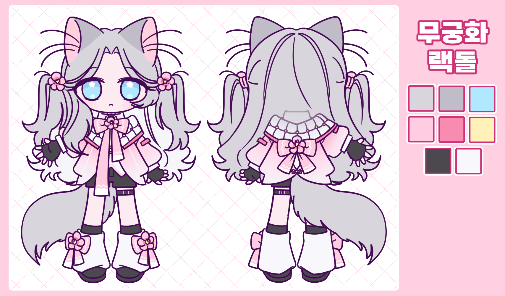 - 캐릭터 자료: (외관 사진 및 글 서술. 컬러파레트 있는 경우 제공해주세요. 이름도 같이 적어주세요)