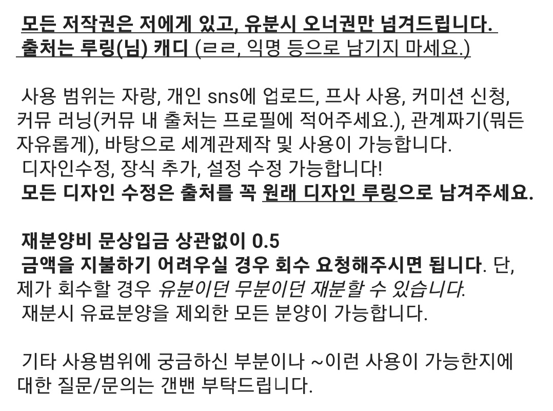 - 상황에 따라 불시에 커미션이 닫힐 수 있습니다